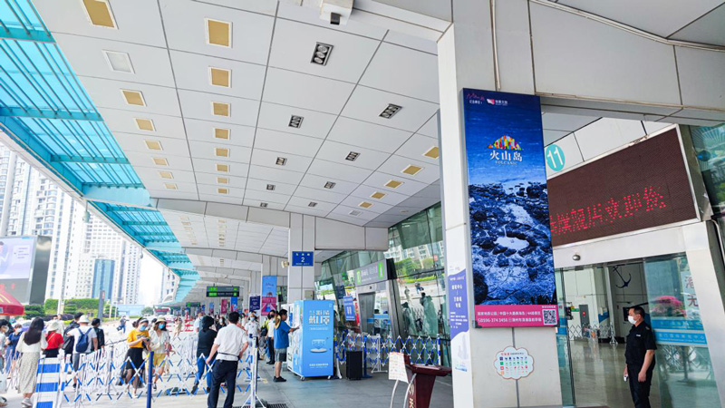 24面大幅燈箱廣告在郵輪中心出發(fā)層的廊道面向全國(guó)各地游客進(jìn)行多角度多方位的展示,通過(guò)不同的火山島的廣告畫面——藍(lán)綠色的大海、金色細(xì)軟的沙灘、暗黑色的礁石、臨海而立的粉色城堡、半球形的可愛(ài)童趣泡泡屋。讓全國(guó)游客可以領(lǐng)略火山島的獨(dú)特的濱?;鹕斤L(fēng)景線。