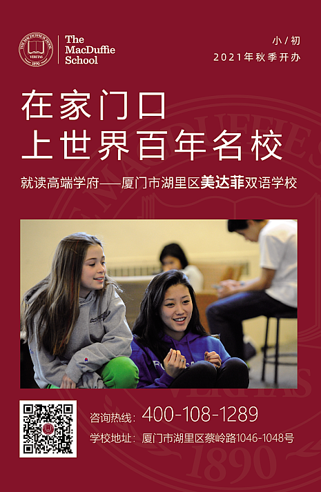 2021年秋季開學,屆時將為廈門學子帶來純正雙語教學服務(wù),來自全球教育界有名望、教學經(jīng)驗豐富的師資隊伍和小班精品化教育模式。