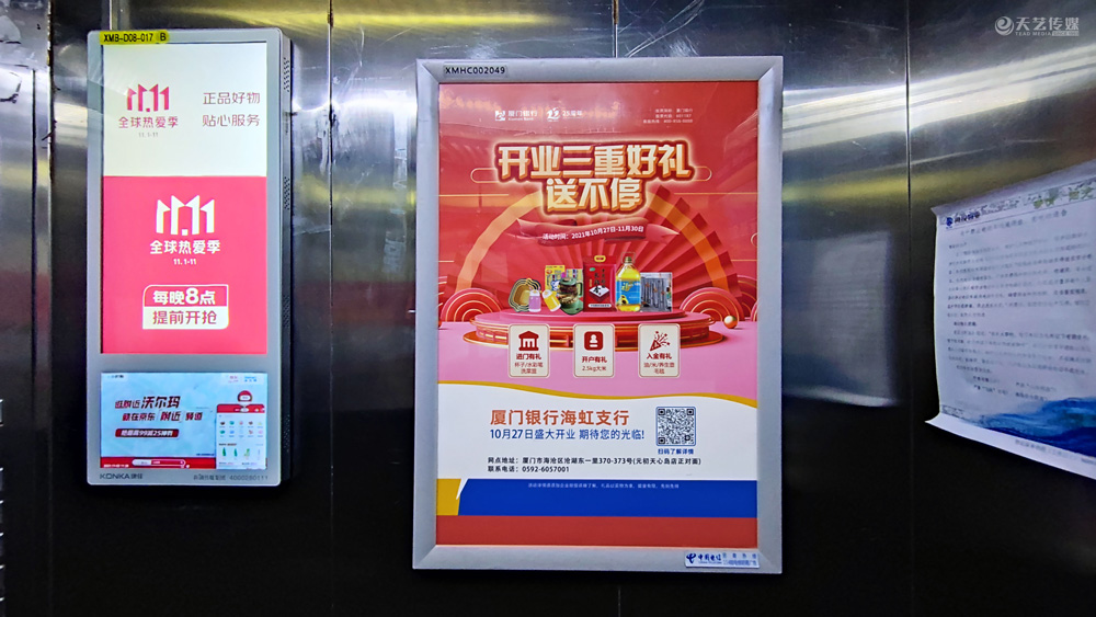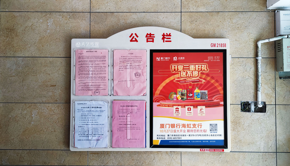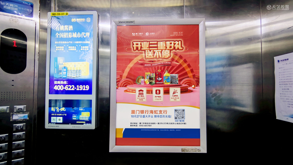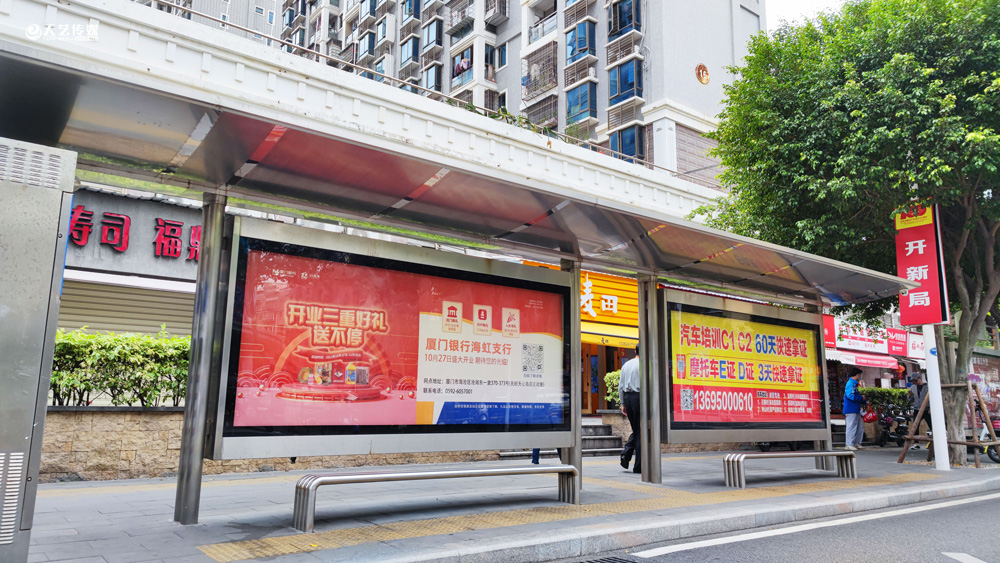 此次廈門銀行海虹支行選擇與天藝傳媒進(jìn)行戶外媒體投放的合作,投放海滄區(qū)(以海滄的生活區(qū)、海虹支行周邊區(qū)域為主)的多個戶外廣告媒體,包括公交候車亭媒體、電梯框架廣告、社區(qū)公告欄媒體及社區(qū)出入口的道閘媒體等。