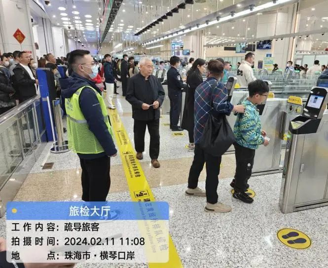 相較往年,今年春節(jié)橫琴口岸呈現(xiàn)出客流高峰提前、持續(xù)時間長、出入高峰疊加等特點,2月11日至16日(大年初二至初七)連續(xù)6天出入單向客流均超過3萬人次。其中,2月12日(大年初三)橫琴口岸單日客流超8.2萬人次,創(chuàng)橫琴口岸成立以來歷史新高。為應對春節(jié)期間口岸高位客流,珠海大橫琴口岸實業(yè)有限公司(下稱大橫琴口岸公司)節(jié)前召開專題會議,提前部署應急人員、物資、設備等通關(guān)安全保障;春節(jié)期間,根據(jù)客流量變化,大橫琴口岸公司通過科學增加人力、設置蛇形緩沖通道、屏幕投放指引等措施,多管齊下加強出入境旅客分流引導,防止因高客流量發(fā)生擁擠、踩踏等治安事件的發(fā)生。另外在現(xiàn)場設置“特別通道”,為老人、孕婦和殘疾人等行動不便的旅客提供便利,并設置了醫(yī)療救援,以備過關(guān)旅客有不時之需。