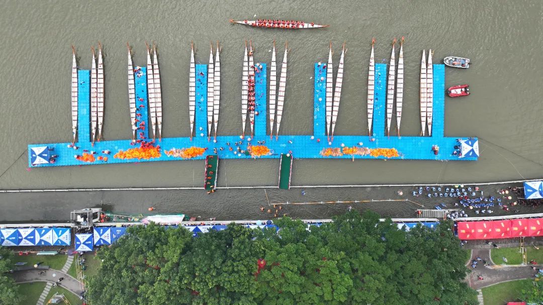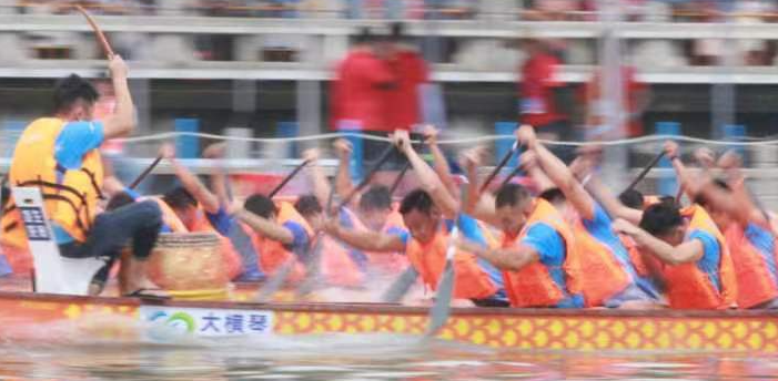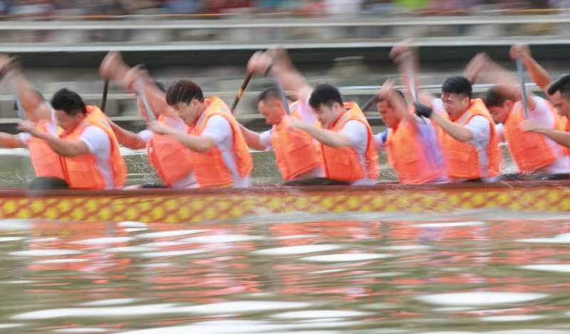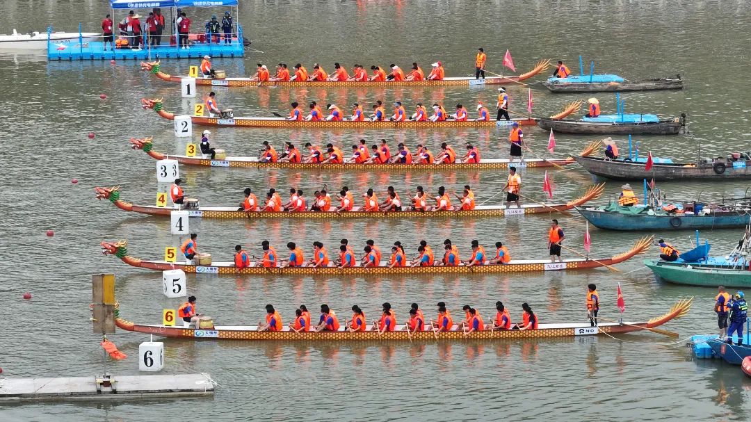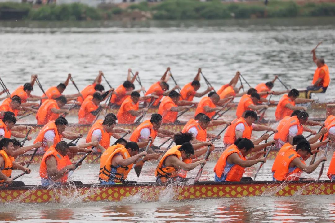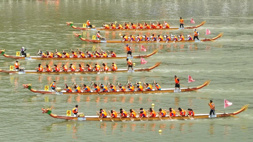 云旗獵獵,鑼鼓頻催。賽場(chǎng)上,在富有節(jié)奏的鼓聲下,整齊劃一的動(dòng)作,奮力揮槳、劈波斬浪,河面上演著“速度與激情”。