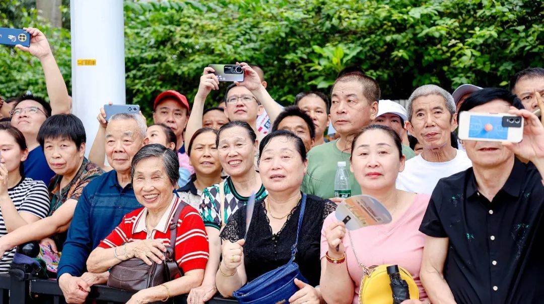 “我每年都和爸爸媽媽一起來(lái)看龍舟賽,現(xiàn)場(chǎng)的氛圍太震撼了!作為斗門(mén)人,我感到非常開(kāi)心和自豪。”斗門(mén)小觀眾彥宏開(kāi)心地說(shuō)。與此同時(shí),不少游客專(zhuān)門(mén)從外地趕來(lái)觀賞這場(chǎng)“水上競(jìng)技盛宴”。在眾多觀眾中,來(lái)自南屏的歐先生是龍舟賽的“鐵桿粉絲”,盡管的腿部受傷,他也要雙手拄著拐杖,全程站著關(guān)注觀賽。