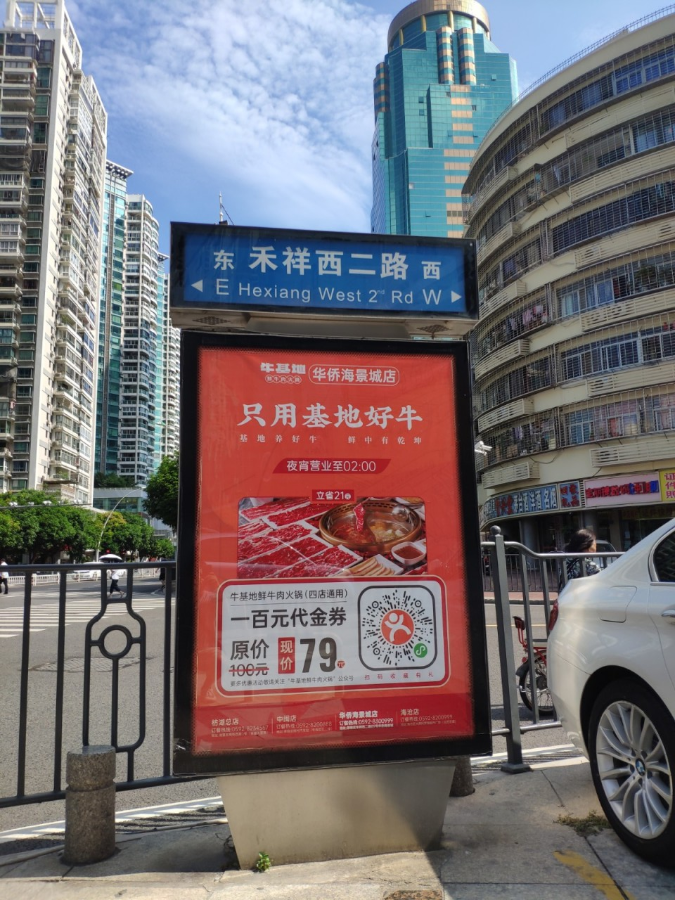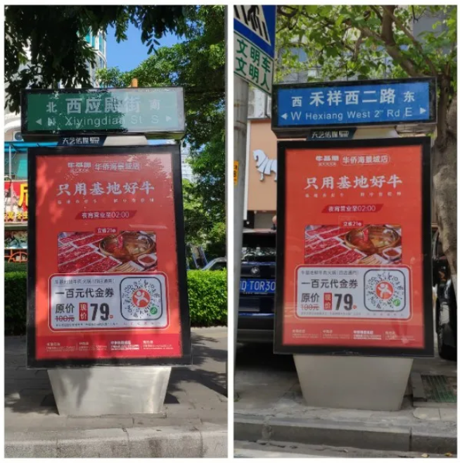 ?;嘏c天藝傳媒強強聯(lián)手,精準宣傳將牛基地華僑海景城店附近的城市路名牌戶外媒體進行定點宣傳。