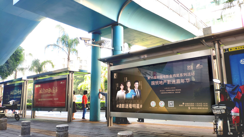 隨著本次金雞盛典系列活動的到來,廈門處處充滿了金雞電影盛會舉辦的氣氛。作為連接廈門各個主干道的公交網(wǎng)絡(luò),遍布城市大街小巷的公交候車亭媒體,以#影迷嘉年華#、#請影迷見明星#等為主背景畫面,全城展示。